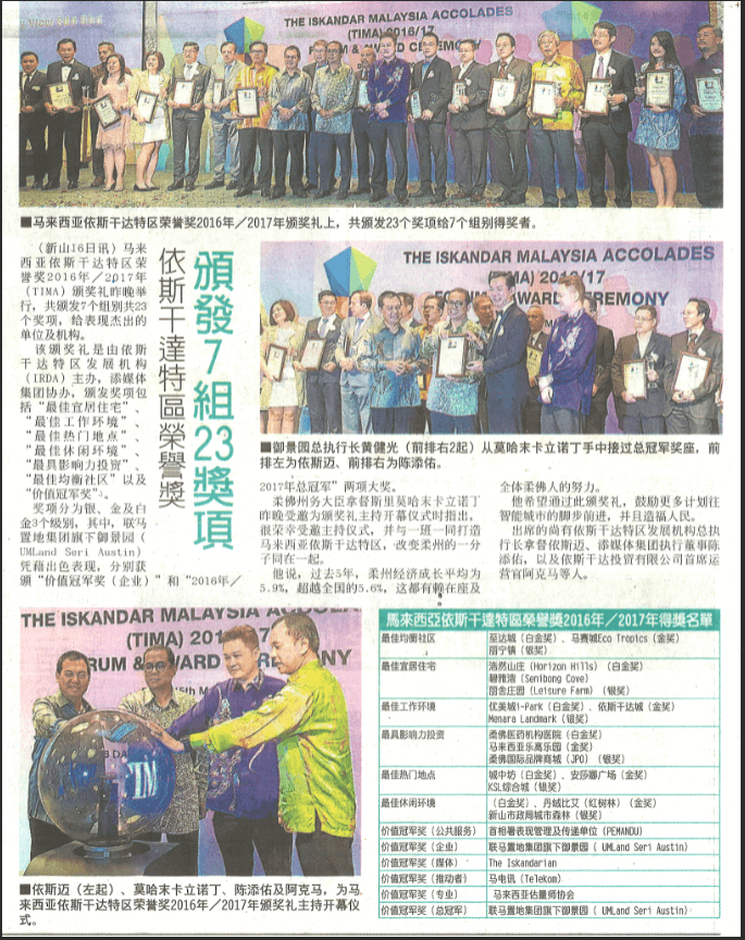 马来西亚依斯干达特区荣誉奖2016年/2017年 (TIMA)颁奖礼