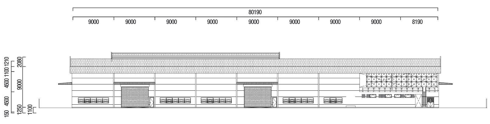 电动卷帘门和低碳钢门(生产区域),夹层玻璃门(入口区域)